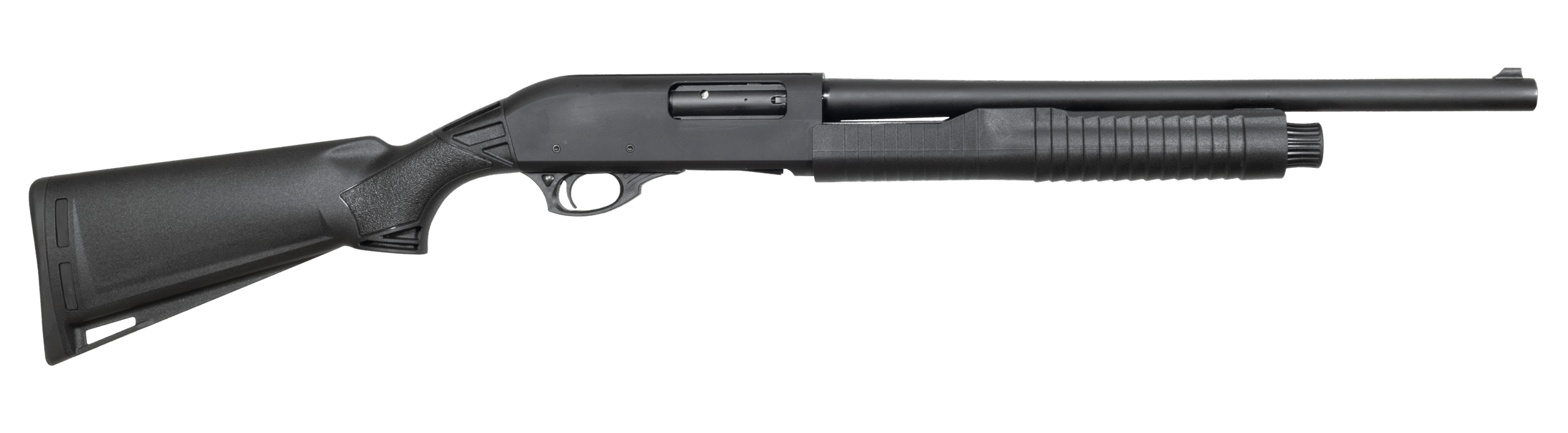 The Sipax B66 pump shotgun is an 18-inch pump-action 12-gauge shotgun with a 4-round magazine. It features flip-up sights and a Picatinny rail for attachments. Perfect for reliable home defense and range use.